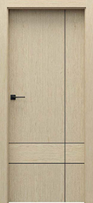 Ușa este acoperită pe ambele părţi cu placă de furnir natural de calitate superioară. Suprafaţa ușii este protejată cu lacuri ecologice pe bază de apă, întărite cu tehnologia UV (mat). Ușile sunt completate de inserţii din aluminiu cu lăţimea de 6 mm, de culoare argintie, aurie sau neagră.