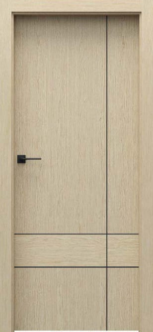 Ușa este acoperită pe ambele părţi cu placă de furnir natural de calitate superioară. Suprafaţa ușii este protejată cu lacuri ecologice pe bază de apă, întărite cu tehnologia UV (mat). Ușile sunt completate de inserţii din aluminiu cu lăţimea de 6 mm, de culoare argintie, aurie sau neagră.